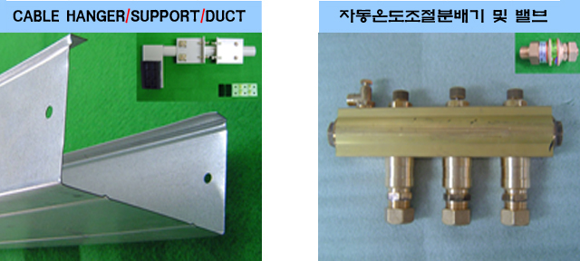 ¡¡ÇϱâÀÇ Á¦Ç°µéÀº ¿¤¸®º£ÀÌÅÍ ºÎǰ(Elevator's parts), ³¹æ¿ë ÀÚµ¿¿ÂµµÁ¶Àý¹ëºê (Grade Up Shape Memory Alloy Valve) ¹× ¿Â¼öºÐ¹è±â(Heating Water Divider)ÀÌ´Ù